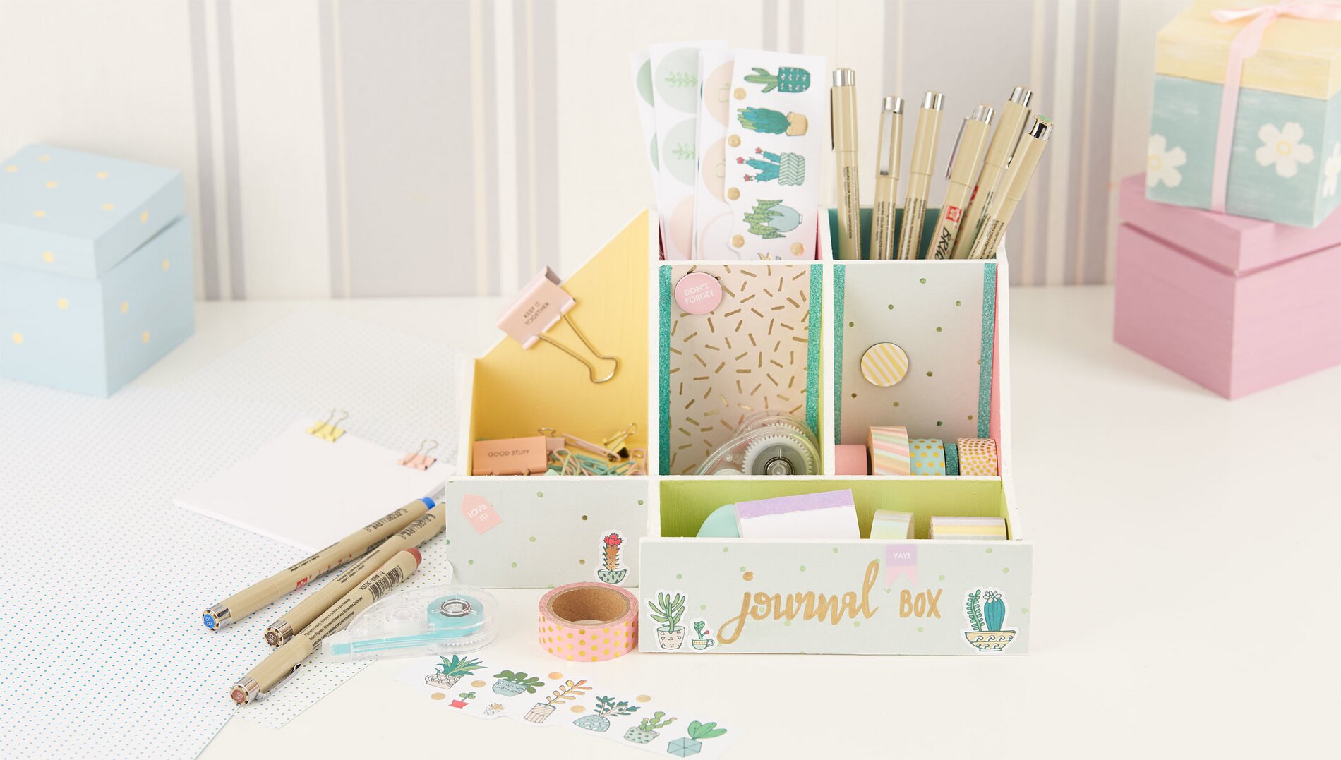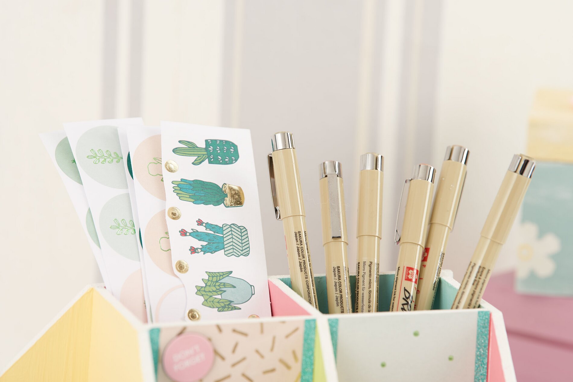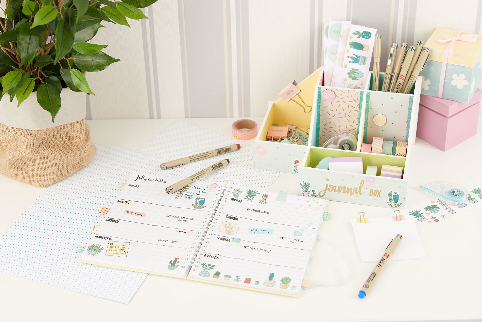 Festeggiate il vostro hobby del bullet journaling con le penne giuste, i materiali decorativi e una cassetta degli attrezzi pratica e unica in cui riporre ordinatamente i vostri materiali per il journaling.