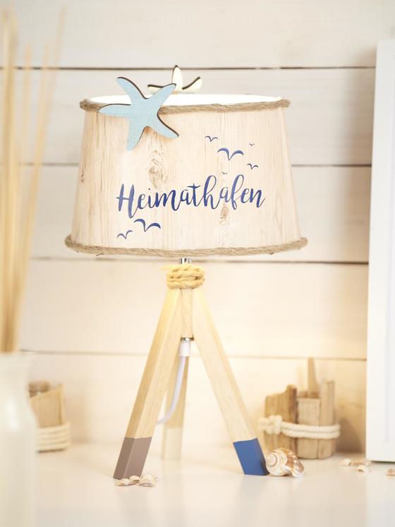 Silhouette Cameo, potete stampare motivi marittimi su una pellicola vinilica autoadesiva secondo i vostri gusti personali. Nel caso della nostra lampada, abbiamo tracciato la scritta Home Harbour. Poi si incollano i motivi o le scritte sul paralume.