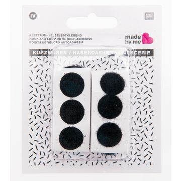 Puntini in velcro di colore bianco. I punti sono autoadesivi e hanno un Ø di circa 6 mm. Riceverà 112 pezzi.