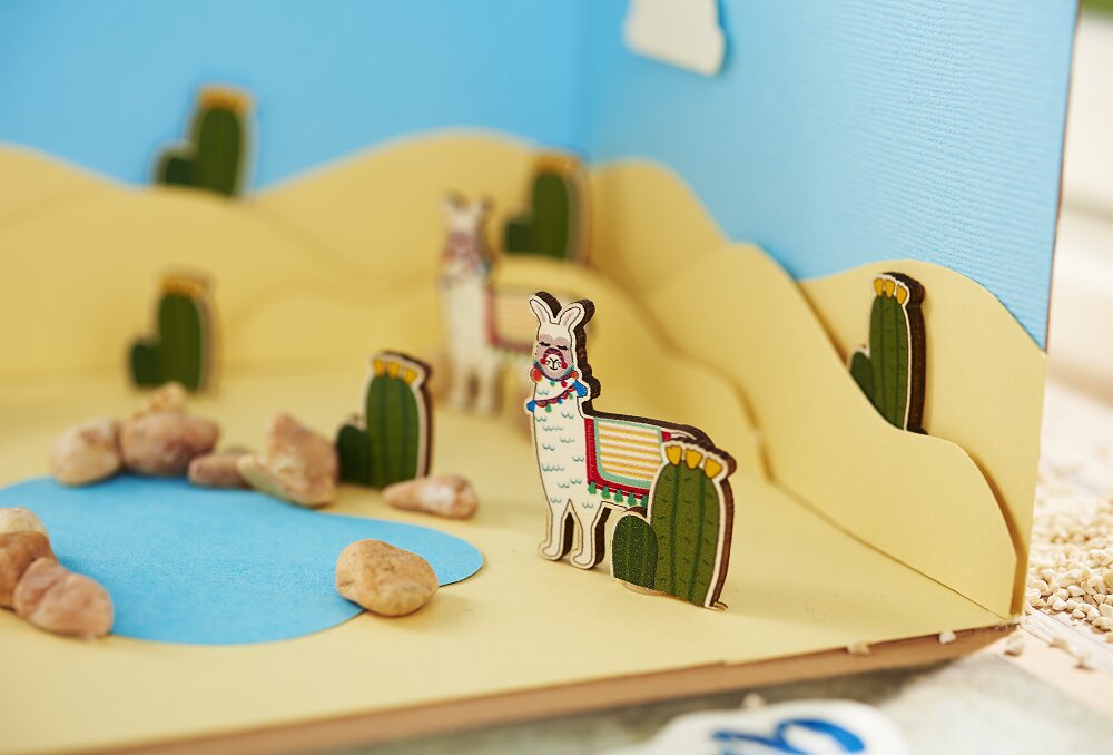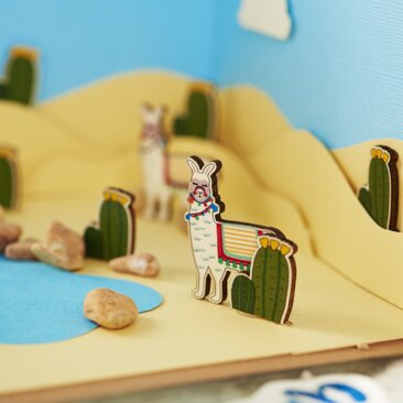 Una volta ottenuta la base per la scatola delle esplosioni, potete decorarla come preferite. Nel nostro esempio, abbiamo optato per un design messicano. La scatola è stata rivestita con carte diverse all'interno e all'esterno. Inoltre, sono stati incollati due lati della scatola. Questi rimangono in piedi quando si solleva il coperchio. Per fare questo, è stata tagliata a misura la carta blu e attaccata all'interno con la colla stick. È possibile ritagliare le nuvole dalla carta colorata bianca e incollarle con le pastiglie adesive 3D. In questo modo si ottiene un grande effetto 3D. In questo modo si possono creare anche paesaggi collinari. Fissate poi alcuni elementi decorativi nella scatola con un po' di colla artigianale.