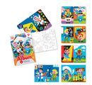 Un meraviglioso set di Sabbiarelli Sand-it for Fun Album Cosa faremo? con 10 motivi preincollati da colorare con la sabbia (non inclusa). I motivi misurano circa 15 x 20 cm.