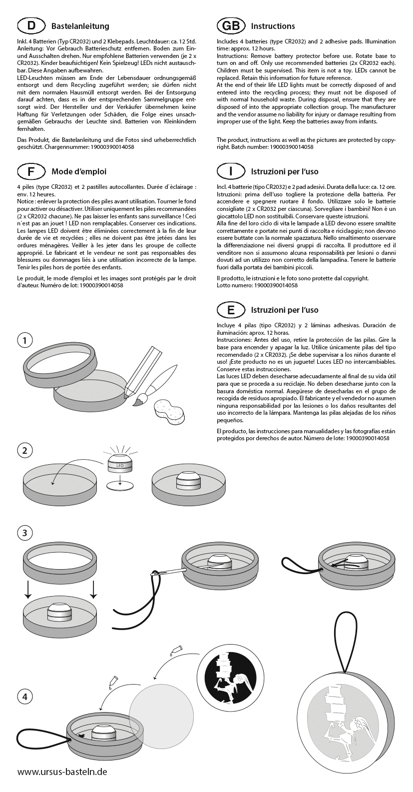 2 LED, incluse 4 batterie e 2 pastiglie adesive
