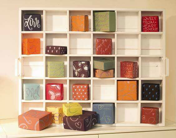 Il primo passo è tagliare la carta colorata a misura. Avrete bisogno di un quadrato di 21 x 21 cm per il coperchio e di 20,5 x 20,5 cm per la scatola.