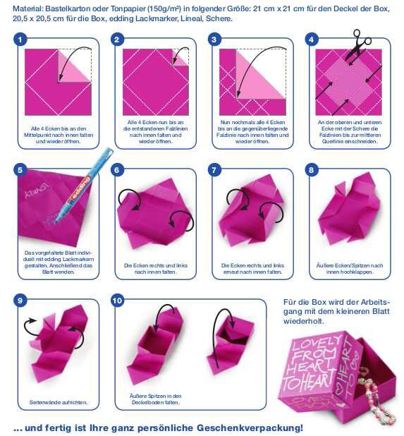 Il colore deve essere asciutto prima di essere piegato. Ora piegate la carta seguendo le dieci fasi seguenti: