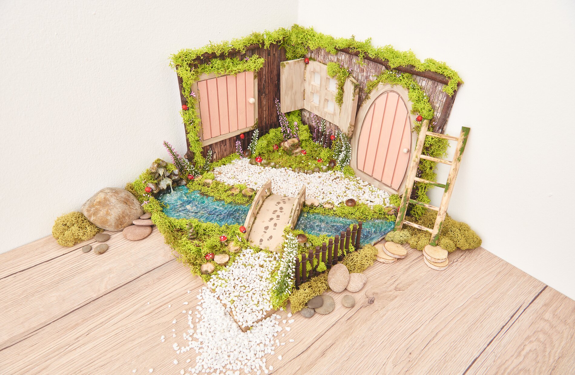 Aggiungete il tocco finale alla vostra scena aggiungendo muschio, erica tagliata, funghi, dischi di legno e piccole coccinelle. Questi dettagli ravviveranno il vostro mondo in miniatura e lo faranno sembrare realistico.