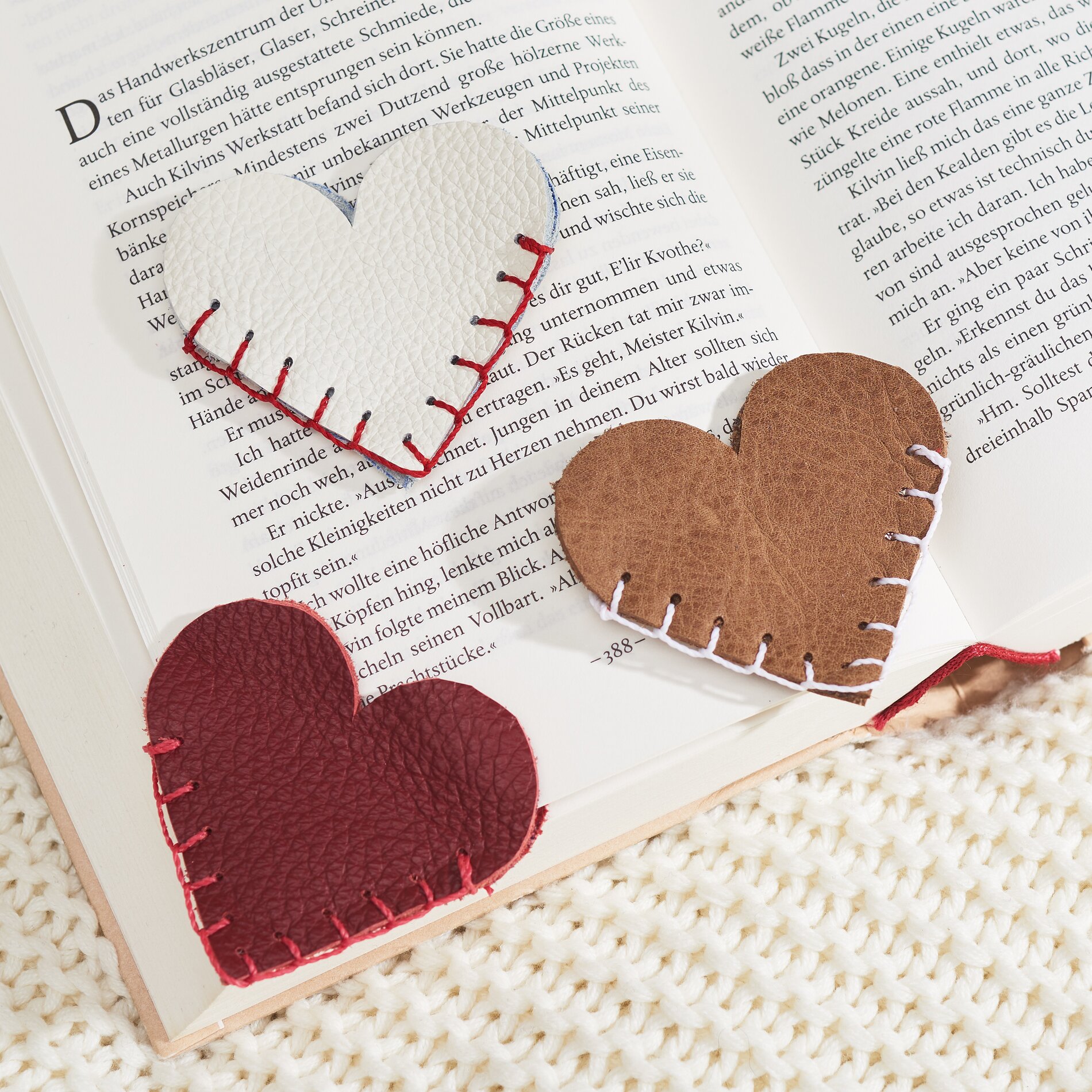 Infilare quindi il cordoncino in un ago da cucito e cucire insieme i due ritagli di cuore utilizzando il punto scorsoio.