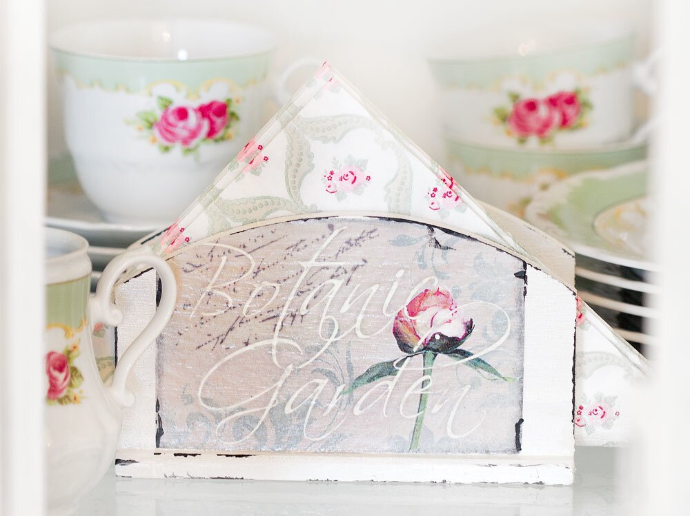 I tovaglioli possono essere conservati in modo decorativo in questo supporto. I bellissimi e diversi motivi sono troppo belli per scomparire in un cassetto. Utilizzate questo supporto e metteteli sotto i riflettori, in modo da avere non solo una fantastica decorazione, ma anche un tovagliolo sempre a portata di mano.