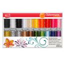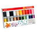 Un pratico set di filo per ricamo a macchina Gütermann con 20 rocchetti da 200 metri ciascuno. Sono inclusi 16 rocchetti di filo per ricamo a macchina Rayon 40 in 100% viscosa (ideale per gli aghi per macchina NM70-90), 2 rocchetti di filo per ricamo a macchina metallizzato, 200 metri ciascuno in argento e oro, in 60% poliammide e 40% poliestere (ideale per gli aghi per macchina NM80-90) e 2 rocchetti di Bobbin 200 metri ciascuno in bianco e nero, in 100% poliestere.