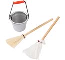 Il set di pulizia in miniatura è composto da una scopa e un mocio di circa 7 cm di lunghezza e da un secchio di circa 2 cm. Le miniature sono realizzate in metallo e legno.