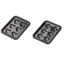 Set di teglie da forno dettagliate in miniatura con una lunghezza di circa 4 cm e una larghezza di circa 3 cm. Le teglie in metallo sono alte circa 0,5 cm. Include due vassoi con simpatici cuori e omini di pan di zenzero.