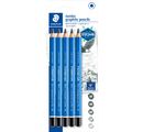 Matite STAEDTLER Lumograph "Jumbo" di alta qualità con 5 matite da disegno esagonali nelle gradazioni di durezza 8B, 6B, 4B, 2B e HB. Il Ø della mina è di circa 5,3 mm. La speciale formula della mina consente di ottenere sfumature brillanti in un'ampia varietà di toni di grigio.