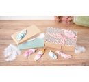 Con un fabbisogno di materiale di circa 150 g per il calcestruzzo per gioielli e di circa 100 g per il Raysin, lo stampo per colata è economico da usare e produce comunque risultati impressionanti. Dona a oggetti semplici come cornici o vasi un aspetto completamente nuovo con le piume stampate. Oppure crei idee regalo individuali trasformando le piume in pezzi unici con il colore.