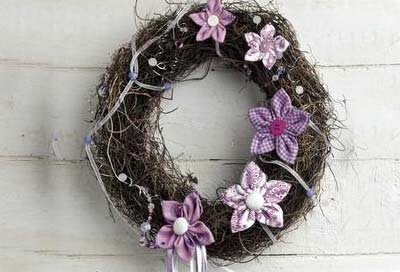 Stilvoller Kranz mit Kanzashi Stoffblüten