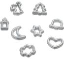 Può dare sfogo alla sua creatività con questo set di tagliabiscotti in miniatura. Il set è composto da 8 pezzi, tra cui luna, cuore, stella, albero di Natale, campane e candele. Ogni stampino misura 0,5 cm ed è realizzato in metallo.