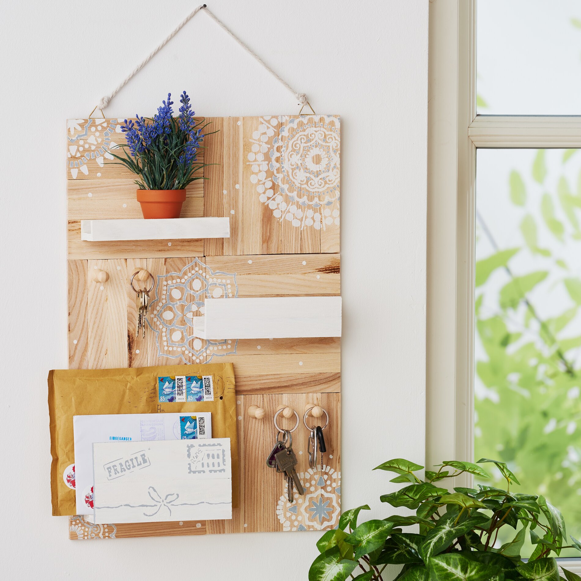 Incollate ora gli scompartimenti realizzati sul retro del pannello portachiavi. Attaccate anche a questi le figure di gioco, che diventano dei pomelli a cui appendere le chiavi in un secondo momento.