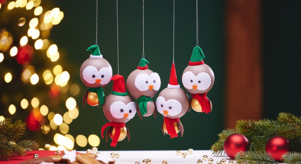 5. Applicare un po' di colla sugli occhi, sul becco e sulle ali e incollarli alle palline di polistirolo. Colorare quindi le pupille con un pennarello nero (ad esempio, un pennarello acrilico).I vostri buffi uccellini di Natale sono pronti e possono trovare posto nella vostra casa.