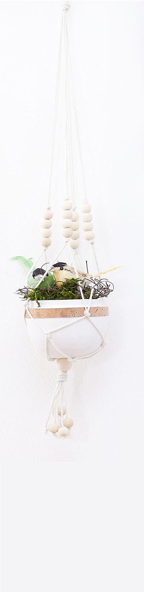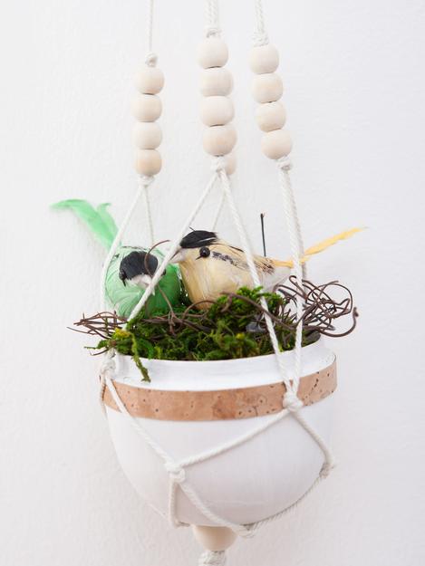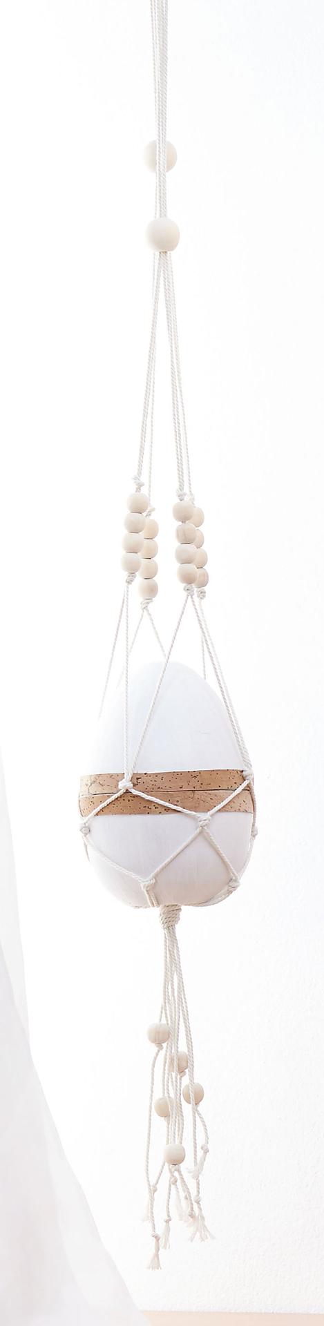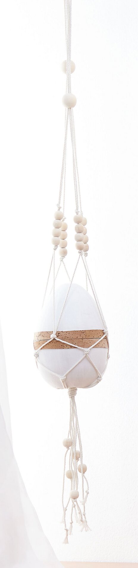 Infine, inserite l'uovo bianco decorativo nella rete di macramè finita e appendete il "semaforo" in modo decorativo.
