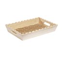 Il vassoio misura circa 35 cm di larghezza e 24 cm di profondità. L'altezza è di circa 6 cm.
