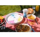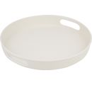 Questo vassoio VBS chic , rotondo, ha un Ø di circa 30 cm e un'altezza di circa 4 cm. Il materiale è composto per il 65% da fibra di bambù, per il 15% da polvere di mais e per il 20% da melamina. La melamina è necessaria per la tenuta del vassoio e lo rende robusto e infrangibile.