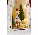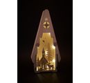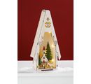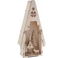 Un grande abete VBS con scena invernale con illuminazione a LED. L'abete ha una dimensione di circa 19,3 x 8,5 x 41 cm. Il materiale è compensato di alta qualità e l'abete è completamente assemblato. Sul retro è presente un vano batteria per 2 batterie a bottone CR2032.