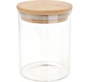 Pratico barattolo VBS "Bomo" con coperchio in bambù per conservare piccoli oggetti come perline, conchiglie o gioielli. Il barattolo è alto circa 10 cm e ha un diametro esterno di circa 8 cm. La capacità è di circa 400 ml. Il coperchio è dotato di una guarnizione in gomma per la chiusura.