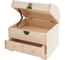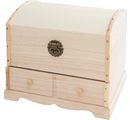 Questa cassapanca con coperchio rotondo VBS è realizzata in robusto legno non trattato e ha un corpo con un cassetto inferiore che imita l'aspetto di 2 cassetti. In questo modo, all'interno della cassettiera in legno, potrà trovare più spazio per i suoi accessori. Disegni la piccola cassettiera con tecniche come il decoupage o la tecnica del tovagliolo e trasformi la sua cassettiera in un pezzo unico.