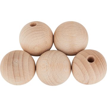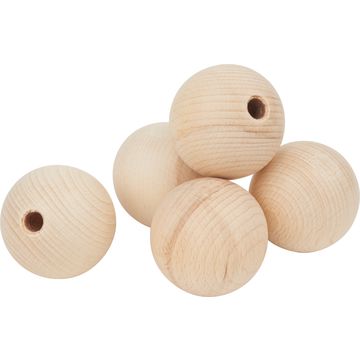 Sfere in legno grezzo con un Ø di 25 mm con un mezzo foro di Ø 6 mm di alta qualità.