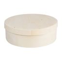 Scatola VBS in legno truciolato con un diametro di circa 15 cm e un'altezza di circa 5 cm.