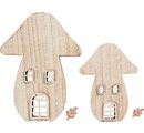 Gli sgabelli per rospi VBS "House" in un set di 2 esemplari in legno MDF. Le dimensioni dei due sgabelli per rospi sono di circa 16 x 12 cm e 22,5 x 16,5 cm, con uno spessore di circa 2 cm. Il set è decorato su un lato e presenta un'impiallacciatura di alta qualità su entrambi i lati. La decorazione consiste in finestre in compensato attaccate e in una foglia di quercia.