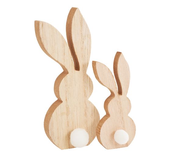 You are looking for a special decoration for Easter? Then the VBS Wooden bunnies "Bommel and Bonnie" are just the thing for you! These two cute bunnies made of MDF wood are a wonderful decoration for your home. They are unpainted and can be painted and decorated according to your wishes. The pompoms are supplied loose and are glued on with a little craft glue (not included). With a size of 9.0-13.0 cm they are a real eye-catcher and are perfect as a decoration for your windowsill, cupboard or table. Thanks to the 2 pieces in the set, you can set up the bunnies as a pair.
